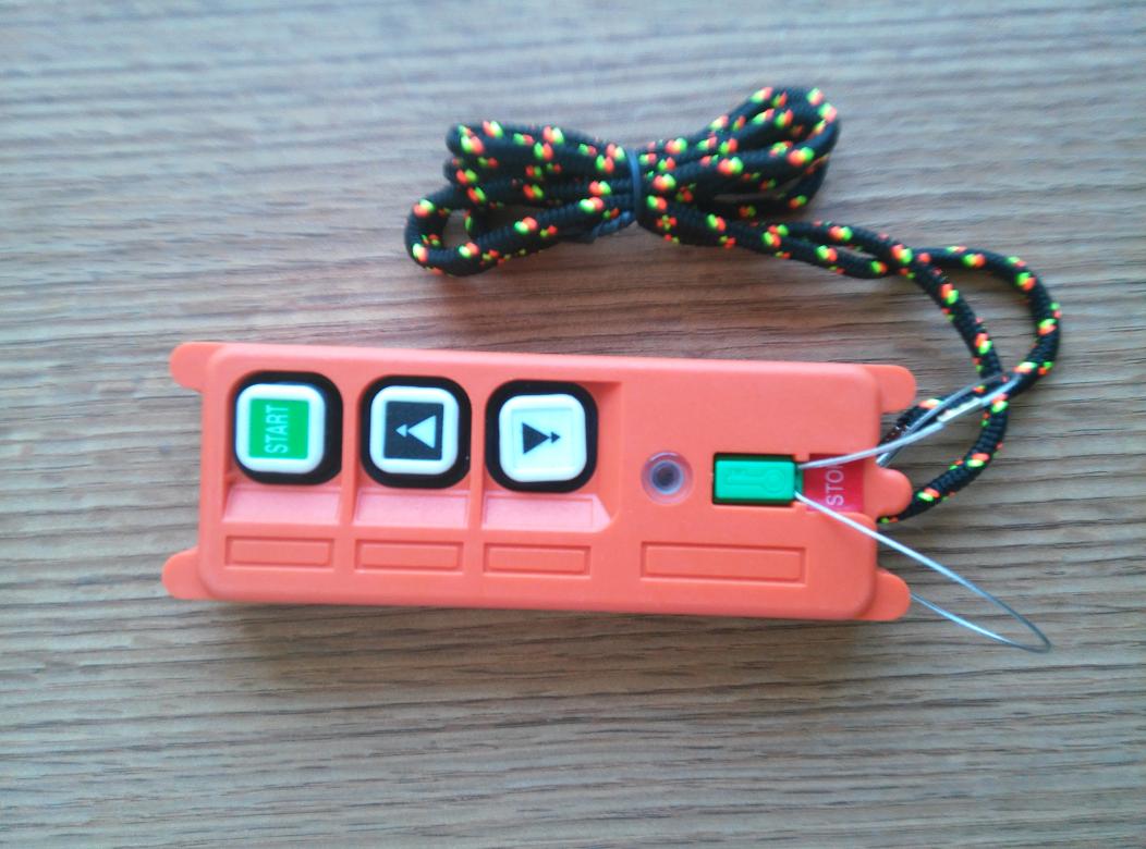 供應臺灣禹鼎F21-2S遙控器手柄,手持發射器!V頻315MHz頻段。三只操 作按鍵,總開/總停+上+下。帶磁性控制開關,帶掛繩。 最上邊一顆按鈕功能可以設定成總啟動,也可以設定成總停止。 設定成總啟動時,可以控制接收器的四個輸出繼電器:總開+正轉+反轉+電鈴。 設定成總停止時,只能控制接收器的三個輸出繼電器:總開+正轉+反轉。 說明:遙控器的配對需要接收器和發射器頻率相同(晶振為同一個頻段,同一個頻道:CH)、 編碼(S/N)相同、功能設定相同。