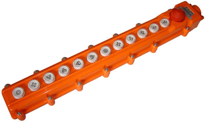 供應超力防雨型起重機用按鈕開關,拉線手柄開關,包括帶急停、不帶急停,帶起停按鈕,不帶起停按鈕等各種形式,按鍵數量從兩位一直到十位。