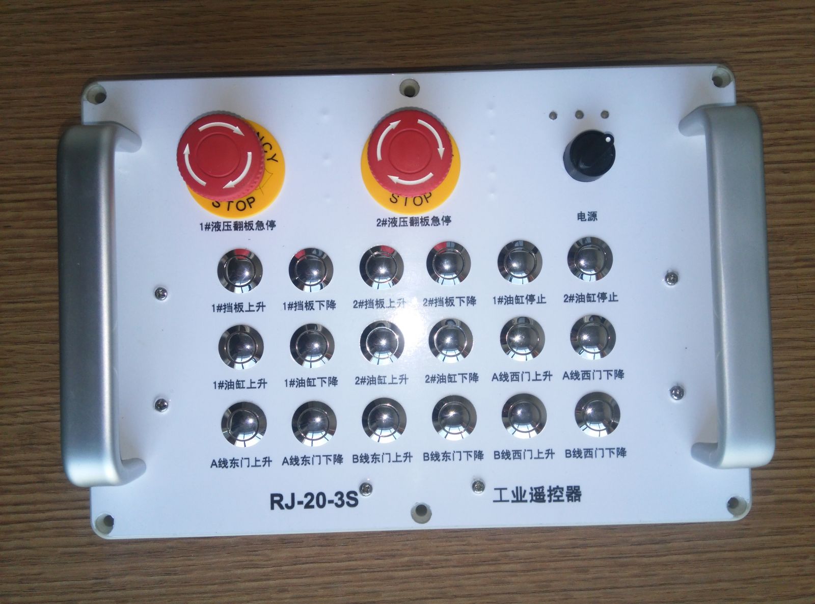 本款遙控器為我公司替河北一客戶定制的20路工業遙控器,具體功能:一個發射器控制三只接收器,第一只接收器控制12個控制點,兩路急停控制,電源電壓為AC220V,第二三只接收器分別控制四個控制點,每一路控制點輸出兩根獨立的控制線。所有按鍵(除急停以外)都是點動控制。急停為自鎖功能輸出,按下急停按鍵,對應的繼電器輸出急停信號。