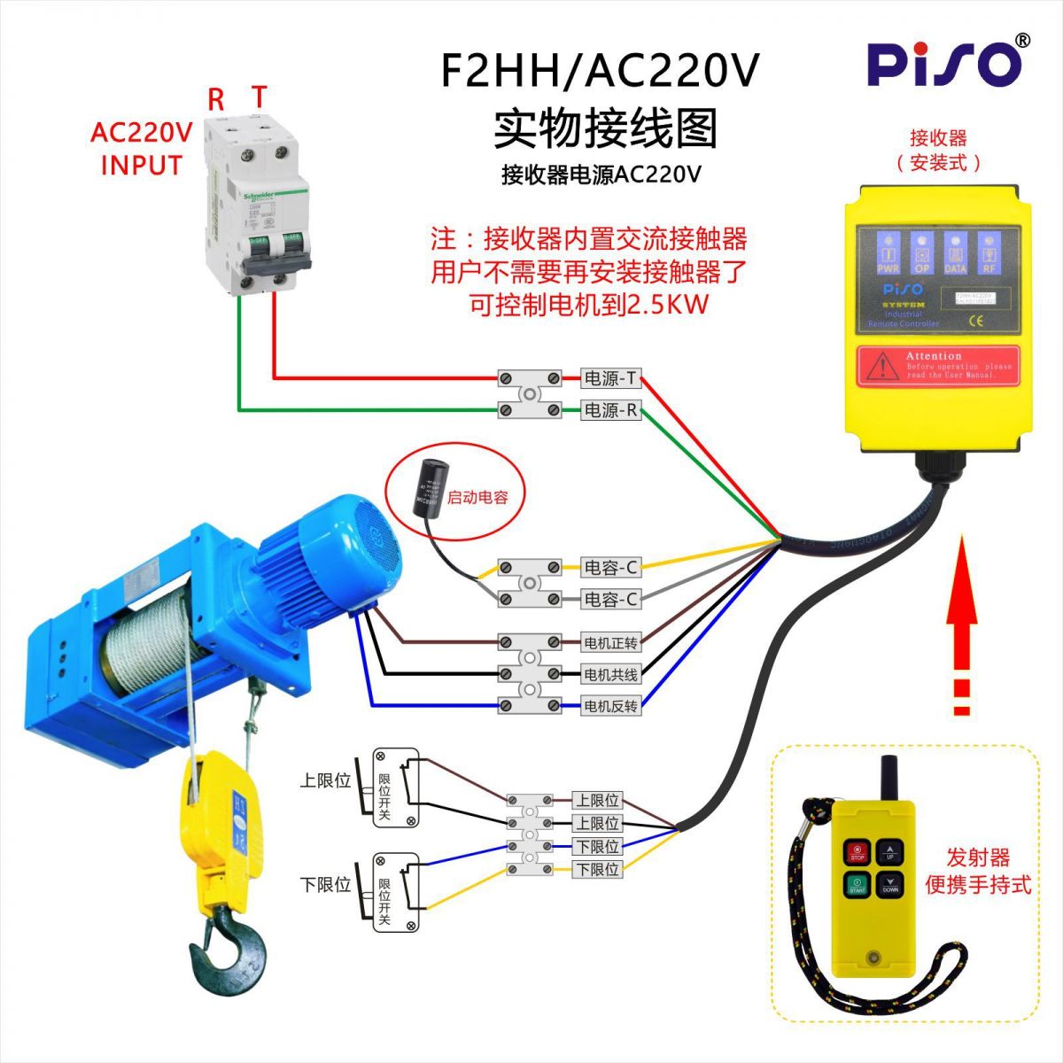 15、接收器帶上下(或正反)限位功能,F2HH/220V帶電容短接功能。