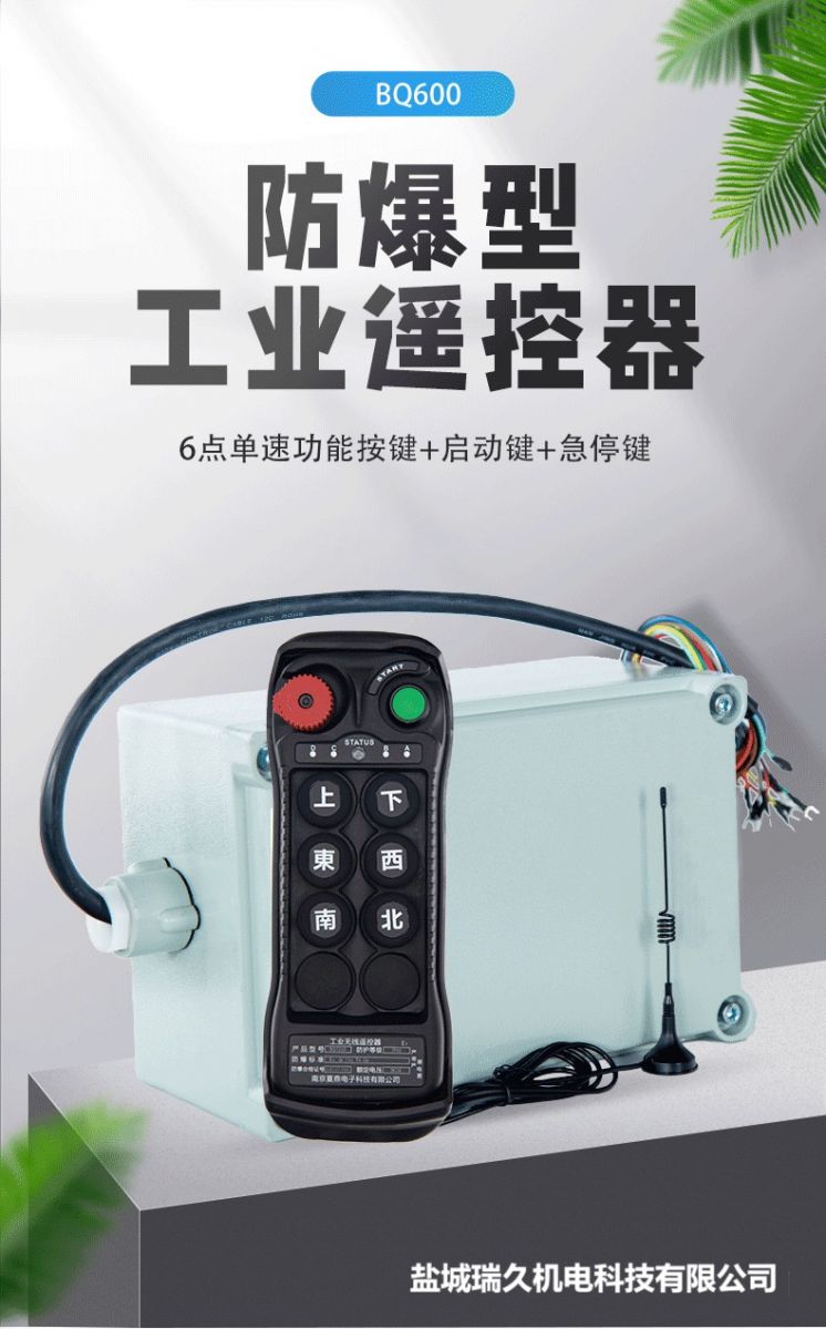 LCC高品質遙控器,BQ系列防爆遙控器分為全防爆和半防爆兩種模式全防爆就是發射器防爆,接收機配備防爆箱。 半防爆就是發射器防爆,接收機由客戶自行安裝至自備配備防爆箱內。 BQ系列防爆遙控器包含以下4種型號: BQ600六鍵防爆遙控器 、BQ800八鍵防爆遙控器、BQ1000十鍵防爆遙控器、BQ1200十二鍵防爆遙控器。