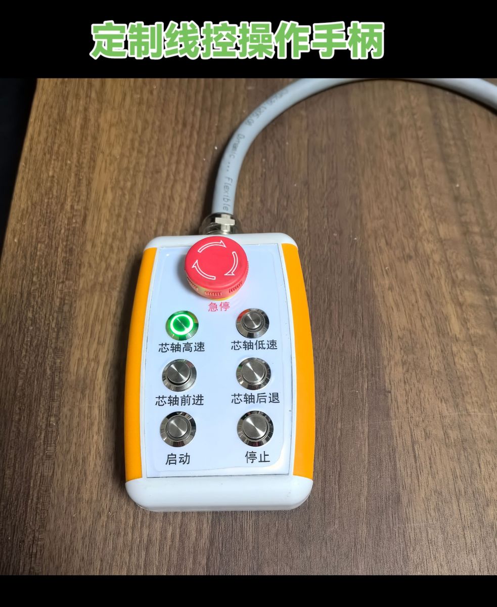 鹽城瑞久機電科技有限公司可以為客戶定制各種工業設備線控操作手柄,拉線手柄,元器件操作形式、輸出形式、都可以定制。如點動按鈕、自鎖按鈕、兩檔旋鈕、三檔旋鈕、多檔旋鈕、船型開關、翹板開關、可調電位器、編碼器、帶燈按鈕、反饋指示燈等都可以制作哦。可以根據要求配備電纜。手柄面板可以根據要求做普通PP貼紙面板、PVC面板、不銹鋼面板。